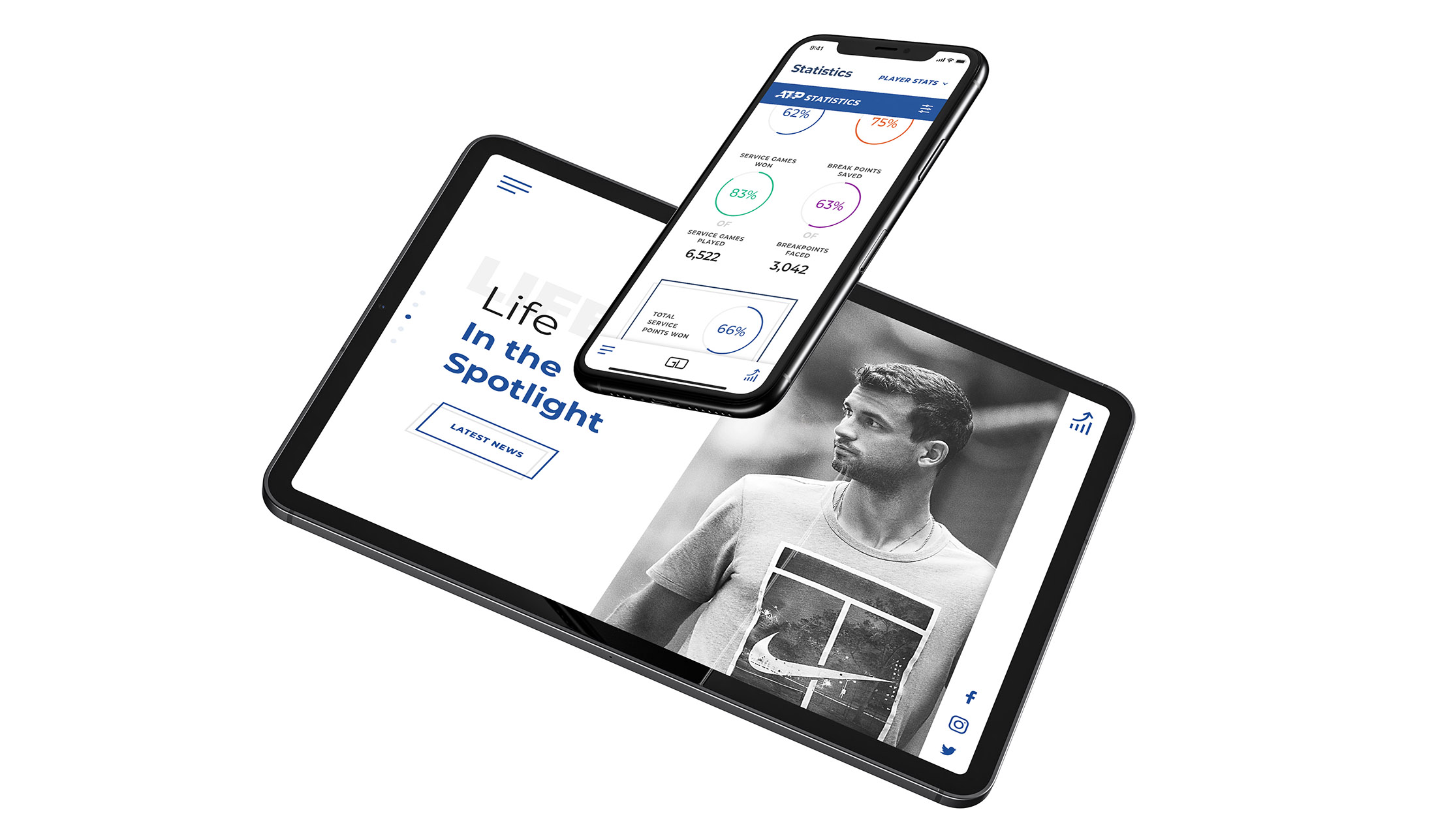 Designing and developing Grigor's official website is a boatload of fun. Below is a preview of the current concept, which entwines a modern, flat design with open light areas, juxtaposed to large and engaging photography; at the same time allowing the viewer to dive into the sea of tennis stats, should she or he feel like it.